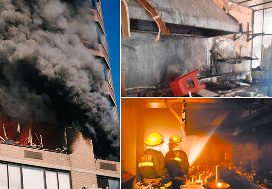 如2012年3月17日南昌市勝利廣場附近的毛家飯店一樓廚房油煙管道突然起火,2013年9月6日位于郫縣順河東街的成都電子機械高等專科學校內,發生一起火災:一條連接著多家餐館的油煙主管道突然起火,明火順勢蔓延,造成了旁邊的多間廚房被引燃。2014年9月17日上午,湖南工程學院濱江一食堂廚房起火,食堂員工和師生組織自救以阻止火勢蔓延。